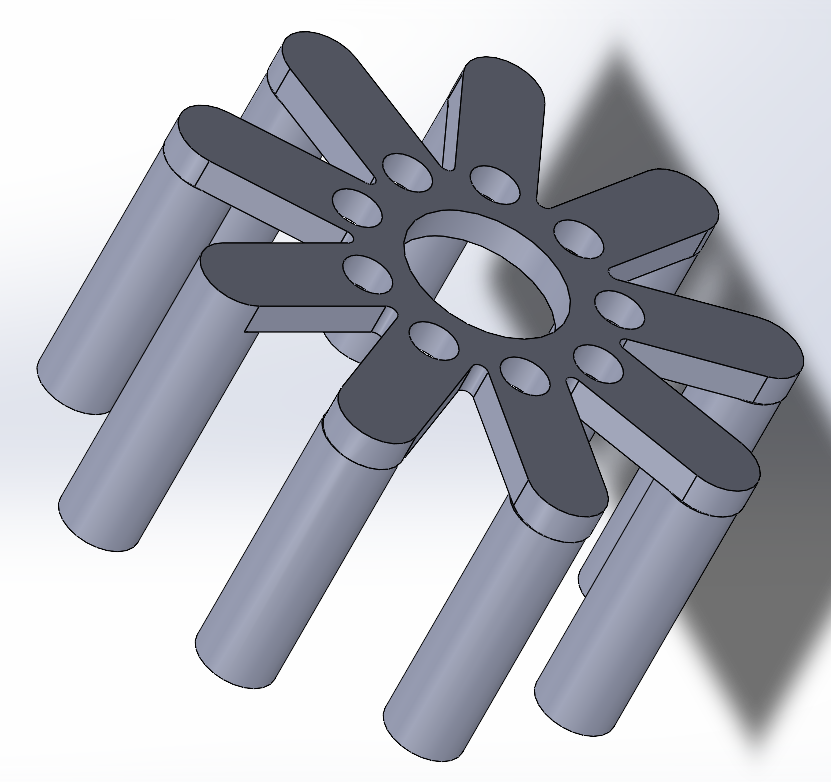 Finally I designed an output shaft object that would help indicate the rotations of the drive output. The diameter of the output pins was chosen carefully to be equal to the output pin hole - 2 * eccentricity for alignment purposes.